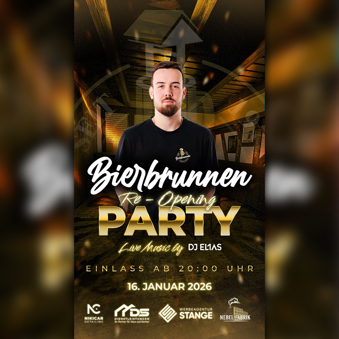 Der Bierbrunnen Pirmasens bekommt ein neues Gesicht dazu! Unser Wirt Nikita bekommt Verstärkung wird seinen Bierbrunnen mit einem weiteren Geschäftspartner die nächsten Jahre zusammen führen. Diesen Neuanfang wollen wir gebührend feiern mit einer riesigen Re-Opening Party im Bierbrunnen Pirmasens!