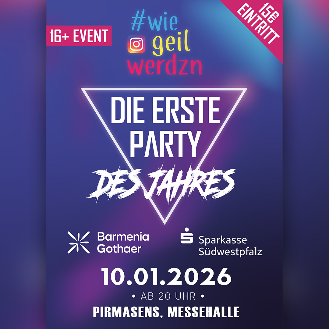 Das absolute Highlight für Pirmasens und Umgebung! Die erste Party des Jahres von WieGeilWerdzn geht in die nächste Runde und wir wollen mit euch, nach dem erfolgreichen Wechsel von letztem Jahr, erneut die Messehalle randvoll machen und die ganze Nacht mit euch feiern. Das dürft ihr auf keinen Fall verpassen!
